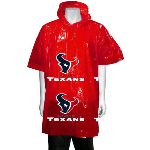 Houston Texans polyethylene poncho with team logos step and repeat printed on the front and back; one size fits most.